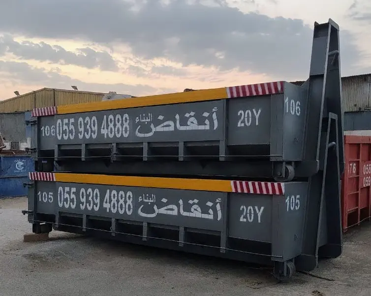 هى الحاوية التى يطلق عليها اسم الحاوية الكبيرة فهى حاوية مسطحة تكون 20 ياردة مكعبه بطول 6 متر وعرض 2 متر، فهي الأنسب والأفضل سعرا فى مجال الهدد ورفع الأنقاض متى توافرت المساحة الكافية فى الشارع بدون مضايقة لأحد من الجيران أو تعطيل لحركة المرور فى الشارع، فهي المفضلة لدي جميع المقاولين وجميع العمالة وذلك لوجود باب خلفي كامل لها يفتح ويغلق وقت ما يشاء المتعاملون مع الحاوية وهي المناسبة لكافة الاحتياجات، مدة إيجار هذه الحاوية تكون من 6-10 يوم بأسعار مناسبة للجميع وبخصومات كبيرة للعميل عند التعاقد بمدد طويلة. للحجز و الاستفسار 0559394888 0543208998 .